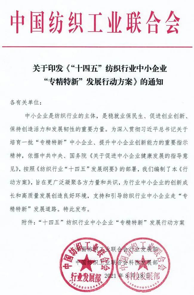 《“十四五”紡織行業中小企業“專精特新”發展行動方案》發布