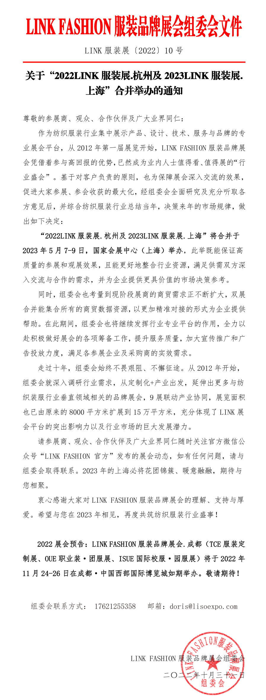 但鑒于近期多地疫情整體形式及杭州當(dāng)?shù)卣畤栏竦姆酪咭螅瑸榱舜_保參展人員的健康安全,基于對客戶負責(zé)的原則,也為了保障大家參展參觀的利益最大化,充分征集多方意見后主辦方經(jīng)全面研究決定: